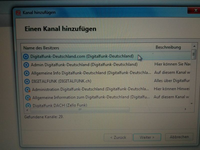 wie die Kanäle von Digitalfunk-Deutschland in die Zello-App